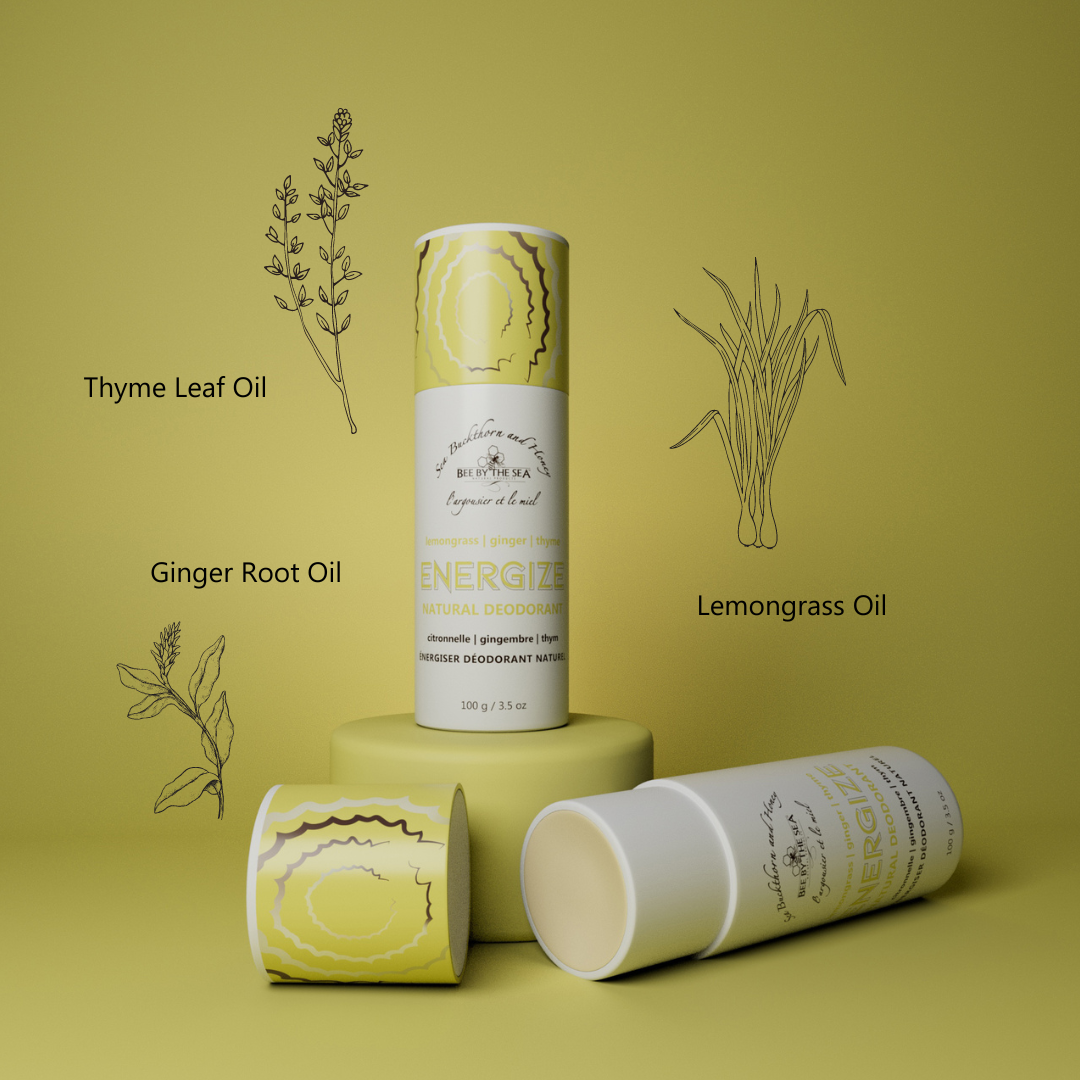 Energize is a stimulating blend of lemongrass, ginger and thyme that awakens the senses and revitalizes the mind. Formulated with odour-crushing ingredients and enriched with an enticing essential oil blend to help you feel and smell your best.