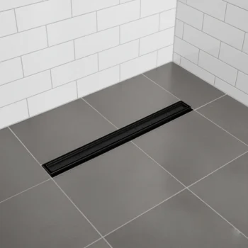 Sleek and durable 304 stainless steel linear drain with premium finishes — available in Black, Silver (24″, 32″, 36″) and Gold (24″).