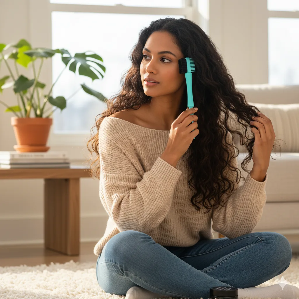 A dual-action edge brush designed to shape baby hairs and smooth textured edges with ease. Its longer bristles offer better grip and control, making it the perfect match for Healthy Edges Smoothing Gel.