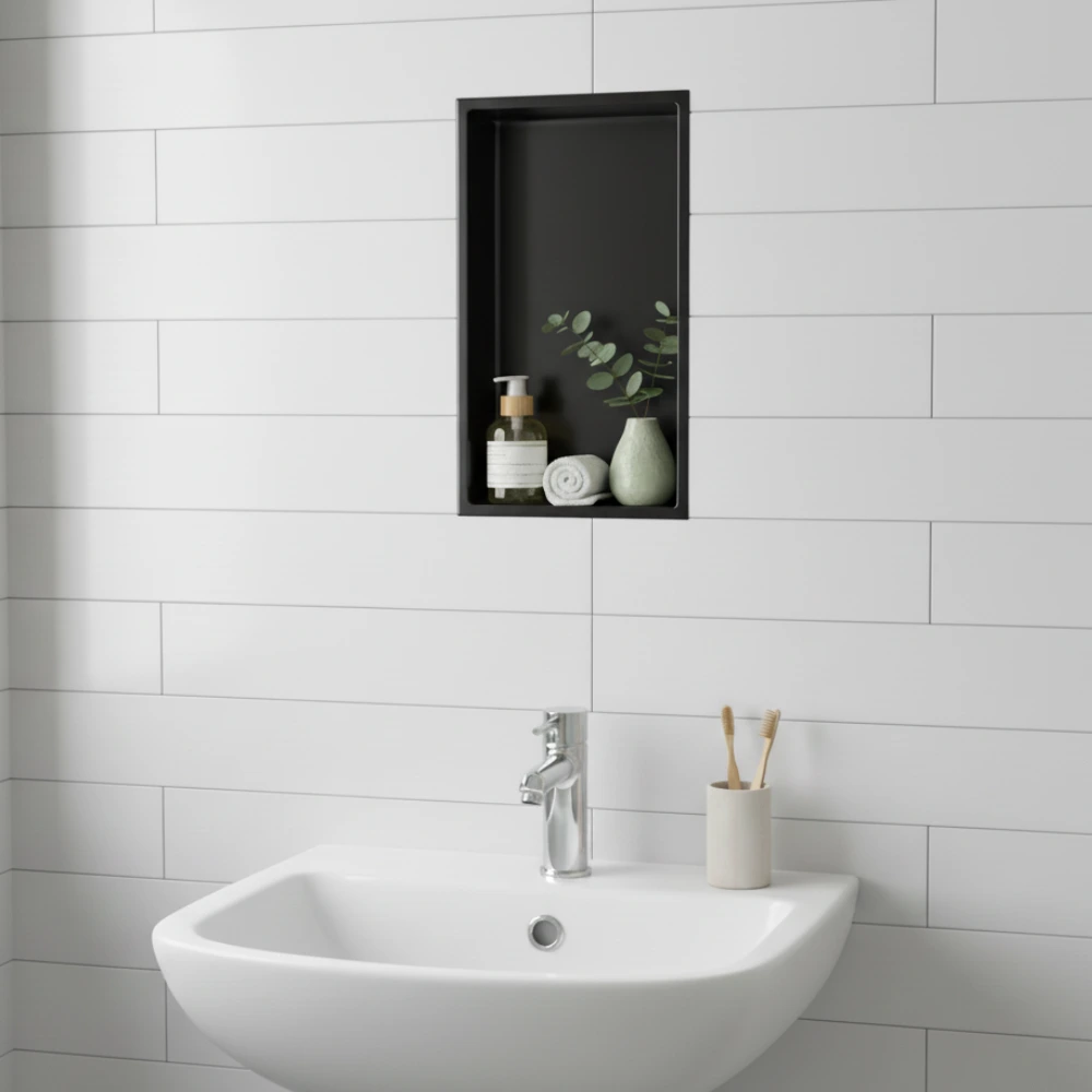 Its recessed, wall-mounted design provides a seamless, space-saving storage option, perfect for holding bath essentials like shampoos, soaps, and dΓ©cor items. Lightweight yet strong, this niche combines elegance with practicality for a refined, clutter-free look.