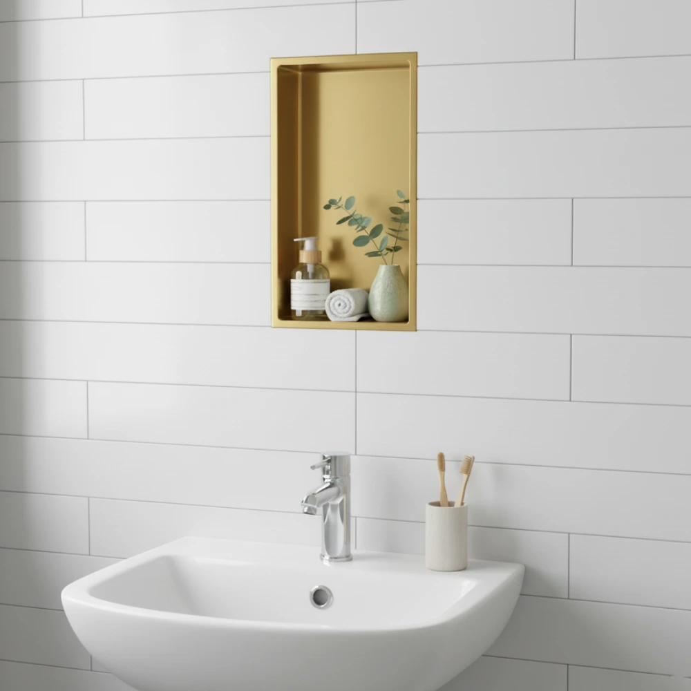 The Luxury Wall Niche Shelf offers a clean, modern solution for stylish bathroom storage. Crafted from high-quality stainless steel, it features a durable Sanding PVD nano coating that ensures rust resistance, easy cleaning, and long-lasting shine.